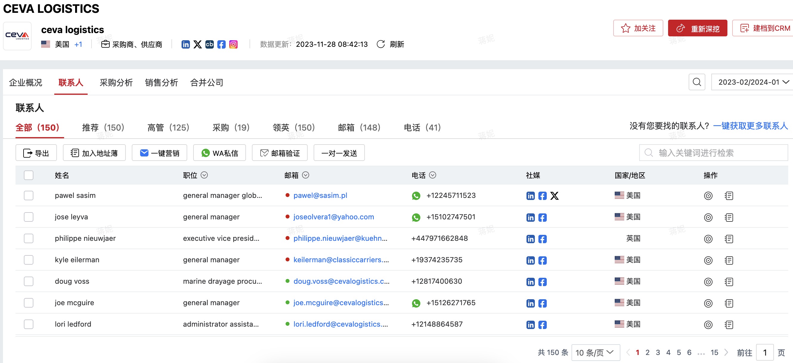 可查询到中国出口到具体国家的精冲机产品信息,包括采购商名称,公司高管信息,规模,提单信息等。并附有相关社媒账号。