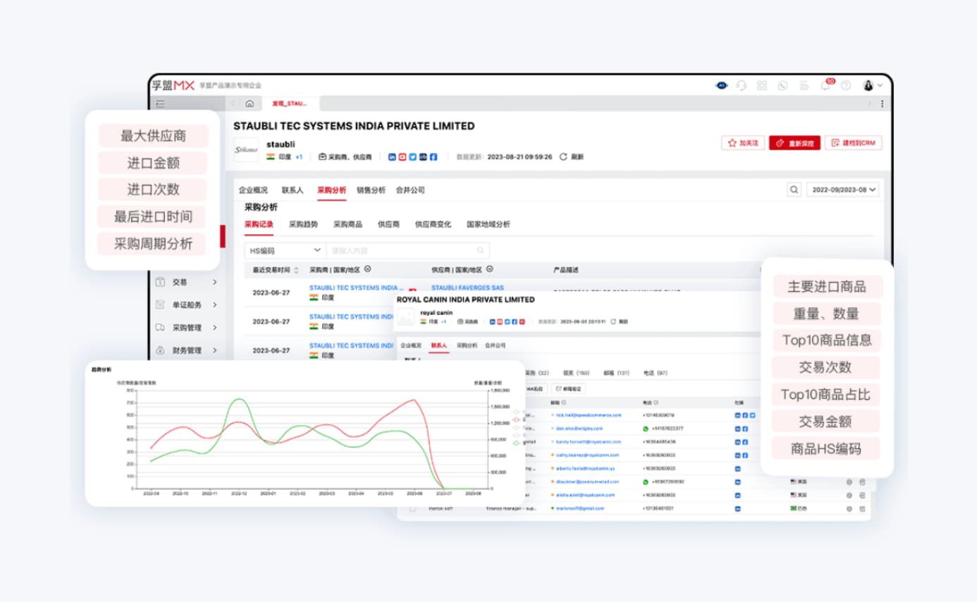 当然,最重要的是多途径收集信息,才能保证获得更全面、准确的信息。这里建议使用专业的外贸软件进行外贸客户的背景调查,例如孚盟MX外贸软件,覆盖客户的采购信息,采购周期,供应链上下游,供应链变更等背调查询,3分钟即可完成客户重要信息的背景调查。下方是该软件界面展示,可了解详情或预约演示体验。(以上部分内容整理自浙江省贸促会)