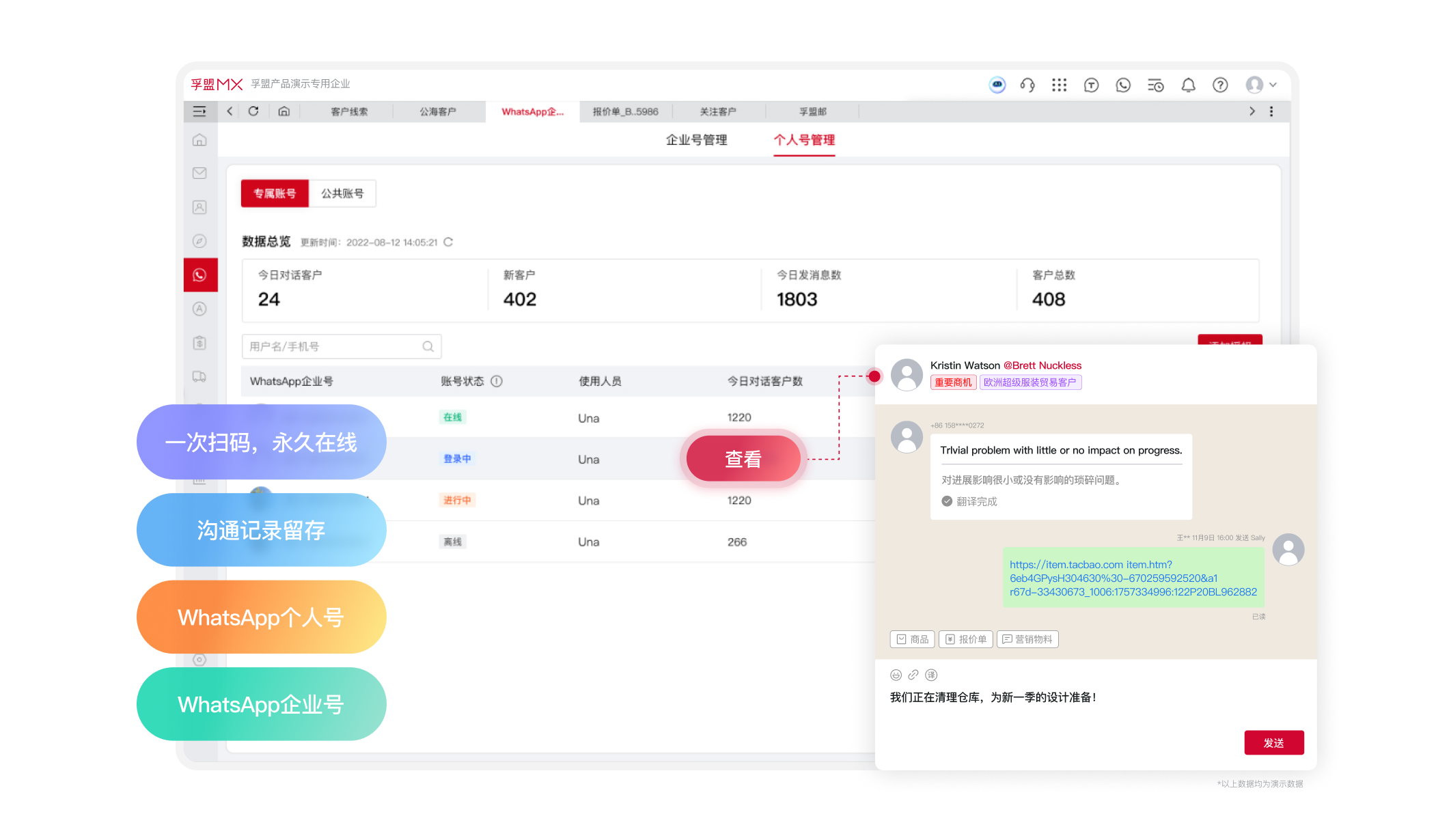 WhatsApp管理问题 • 员工使用的WhatsApp账号太多、太乱,难以统一管理