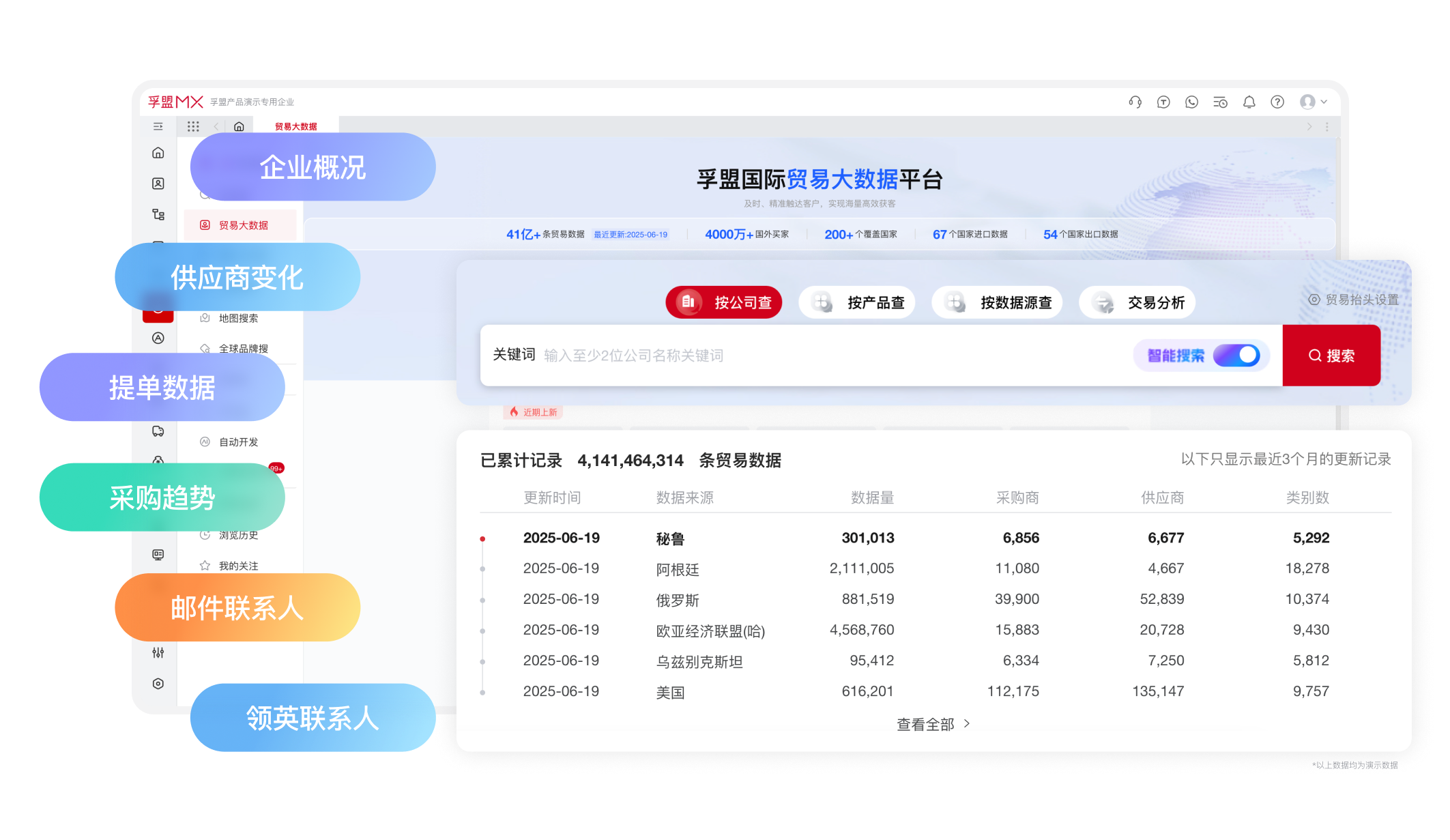 孚盟提供的客户信息皆源于贸易数据、海外社交媒体、企业官方网站等多渠道,以此实现大规模数据收集与精细清洗及整合,最终呈现给用户的是全面且详实的信息。q