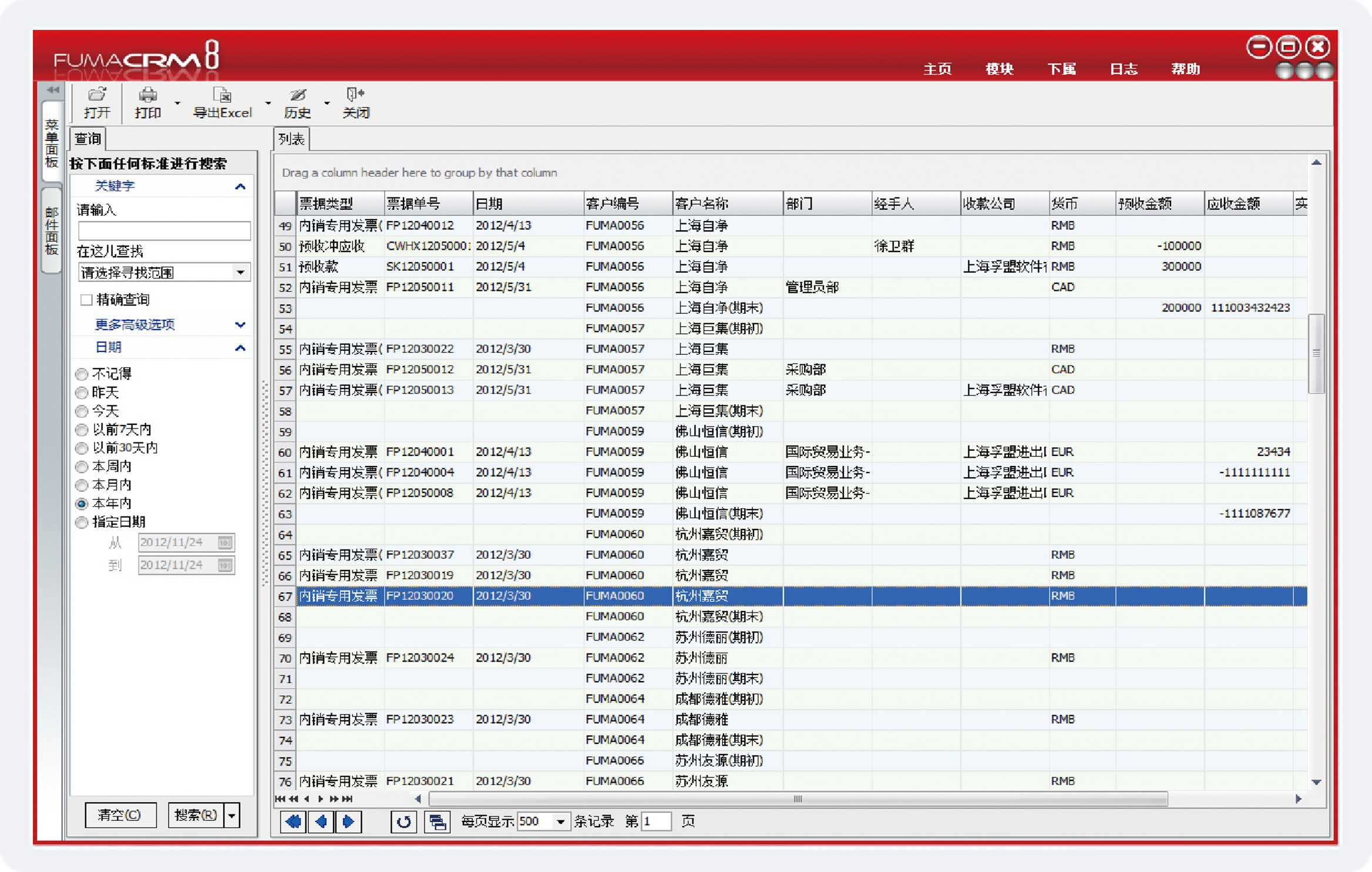 外贸企业在货物出口时,应在货物报关出口的当月做销售处理(月底结帐后出口的货物可在次月做销售处理),而外贸财务管理软件有销售管理功能,支持销售数据的查询和导出,月底统计省时省力。