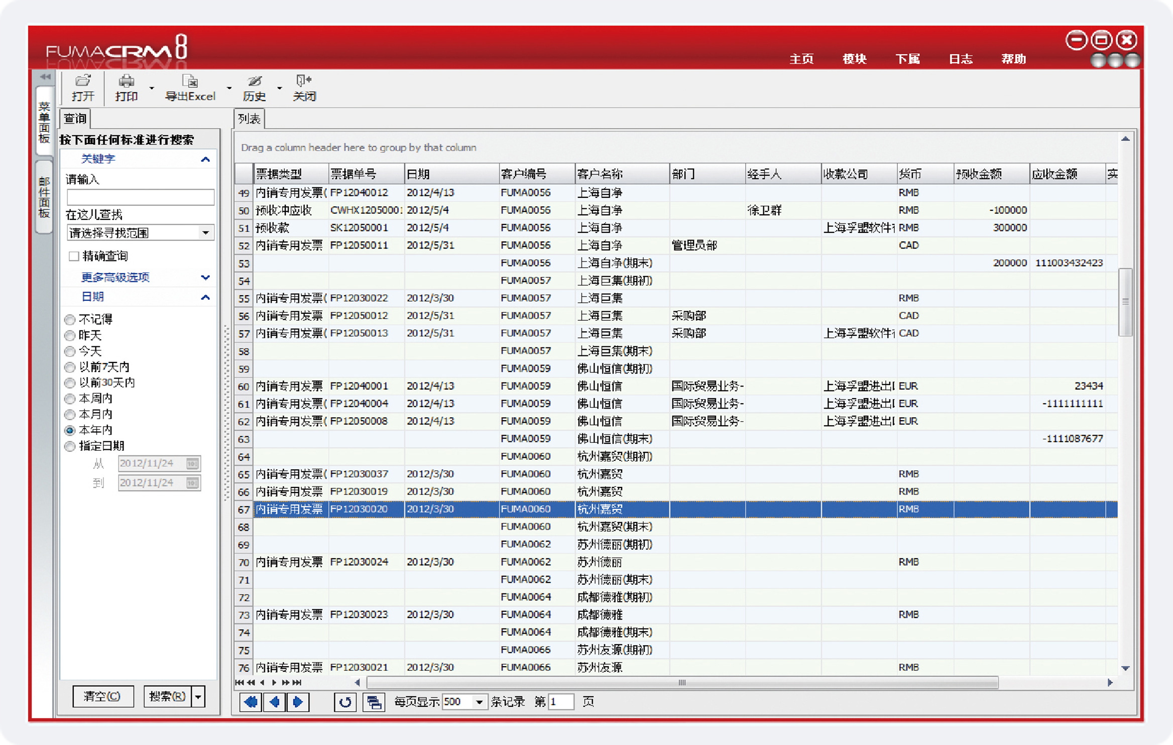费用管理:记录销售、采购、出货过程中各种费用的发生情况,并可以按客户、员工和发票查看相关费用