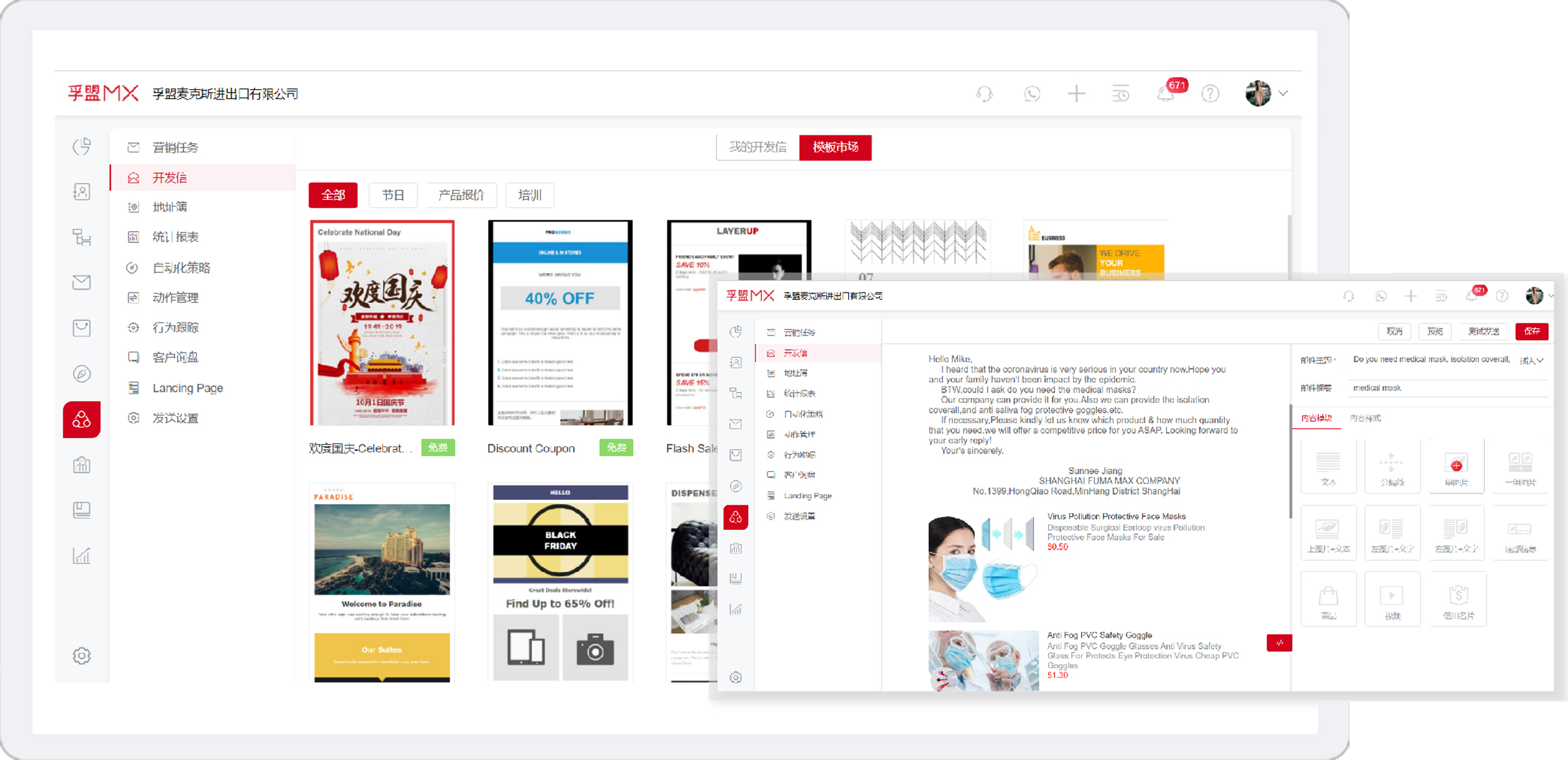综上是目前的外贸邮件营销的技巧和规则,当然,在这里建议借助专业的外贸邮件营销软件,比如孚盟MX邮件营销模块,是一款简单高效的外贸电子邮件发送模块,能够帮助你快速、精准地实现外贸邮件、开发信邮件和批量群发邮件的发送。并且内置海量模板,从内容到模板再到邮箱验证及导入一气呵成,解决外贸邮件营销效率低,不精准问题。
