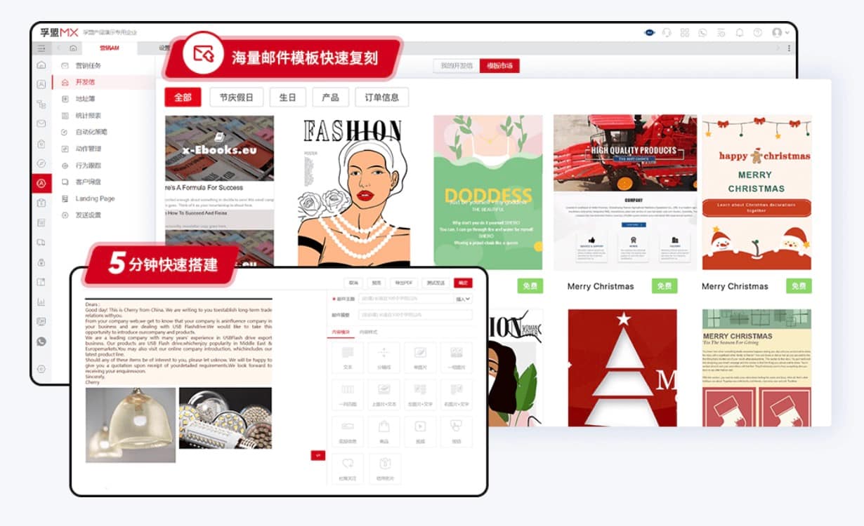 当然开发信目前的工作开展也是需要借助专业的外贸软件来操作,因为发布量的巨大加上是发布到海外,所以普通邮箱是没法操作,这里就需要借助专业的开发信软件,可参见上期写的(外贸邮件管理系统哪个好?),因为是以量取胜,所以外贸开发邮件一封一封发就不切实际了,孚盟MX的外贸开发信模块就能很好的决这个问题,并且对于不同行业,不同国家的客户,开发信模版也是有区别的,总不能手动一个一个去编排,而且发布了大量的开发信,最后被查阅的有多少?这个数据是不是也需要被发信人所知晓。普通的邮件工具是没法实现以上的功能,这里就推荐孚盟MX。