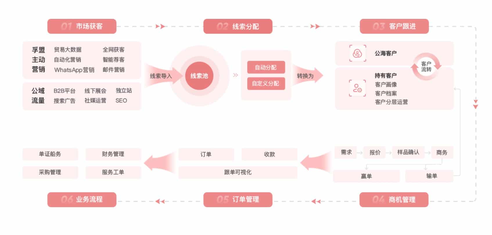 孚盟软件公司提供整车出口全流程解决方案,从询盘,订单,客户,采购,跟单,出货,财务收汇款外贸出口全流程覆盖。具体如下: