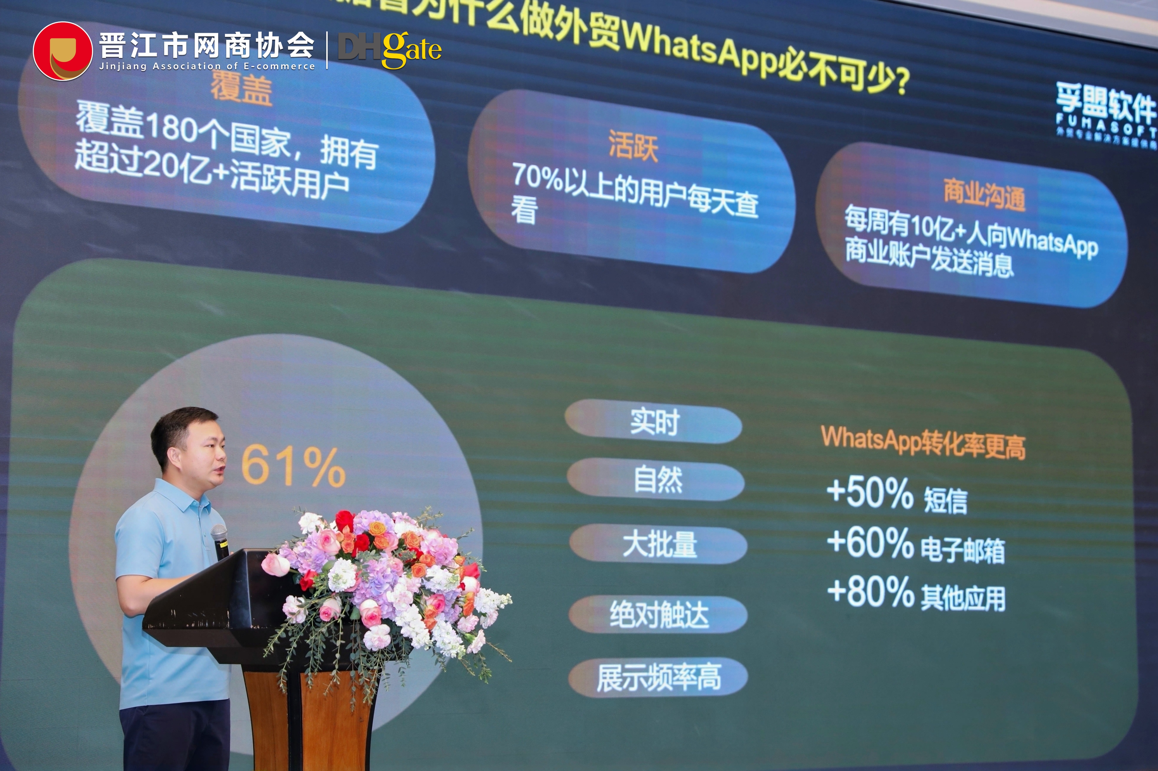 在数字化浪潮席卷全球的今天,跨境电商行业正迎来前所未有的发展机遇与挑战。为助力企业把握跨境新程,探索产业未来,一场主题为“智启跨境新程 网联产业未来”的分享会在泉州晋江国际荣誉酒店盛大举行。孚盟软件泉州区域总经理杨磊受邀出席,并在会上分享了孚盟软件在助力企业数字化转型、提升跨境业务效能方面的丰富经验和前沿洞察。