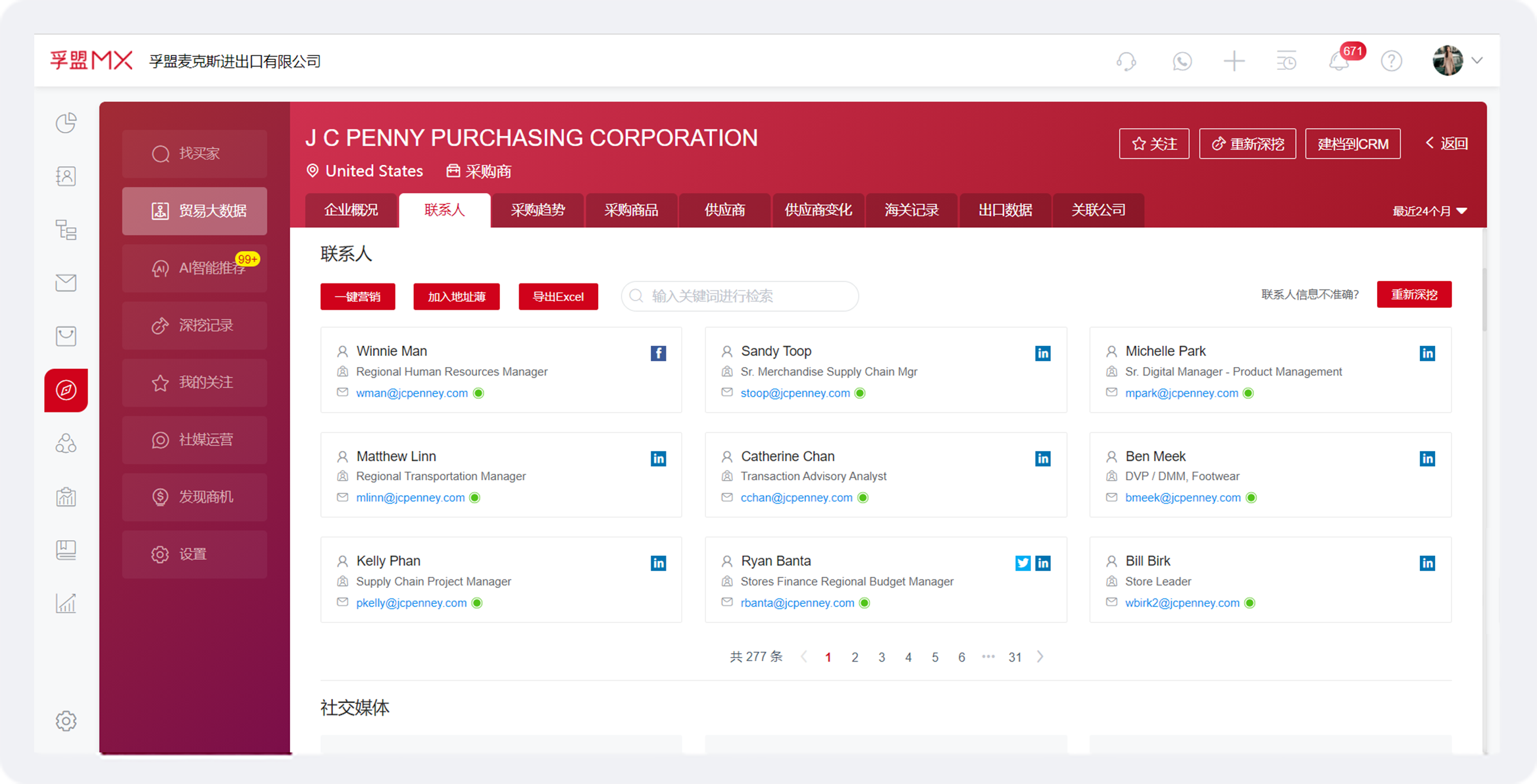 孚盟MX外贸CRM汇聚全球37个国家的采购数据实时更新,覆盖全球3000万+采购商, 目标客户上下游供应链深挖。