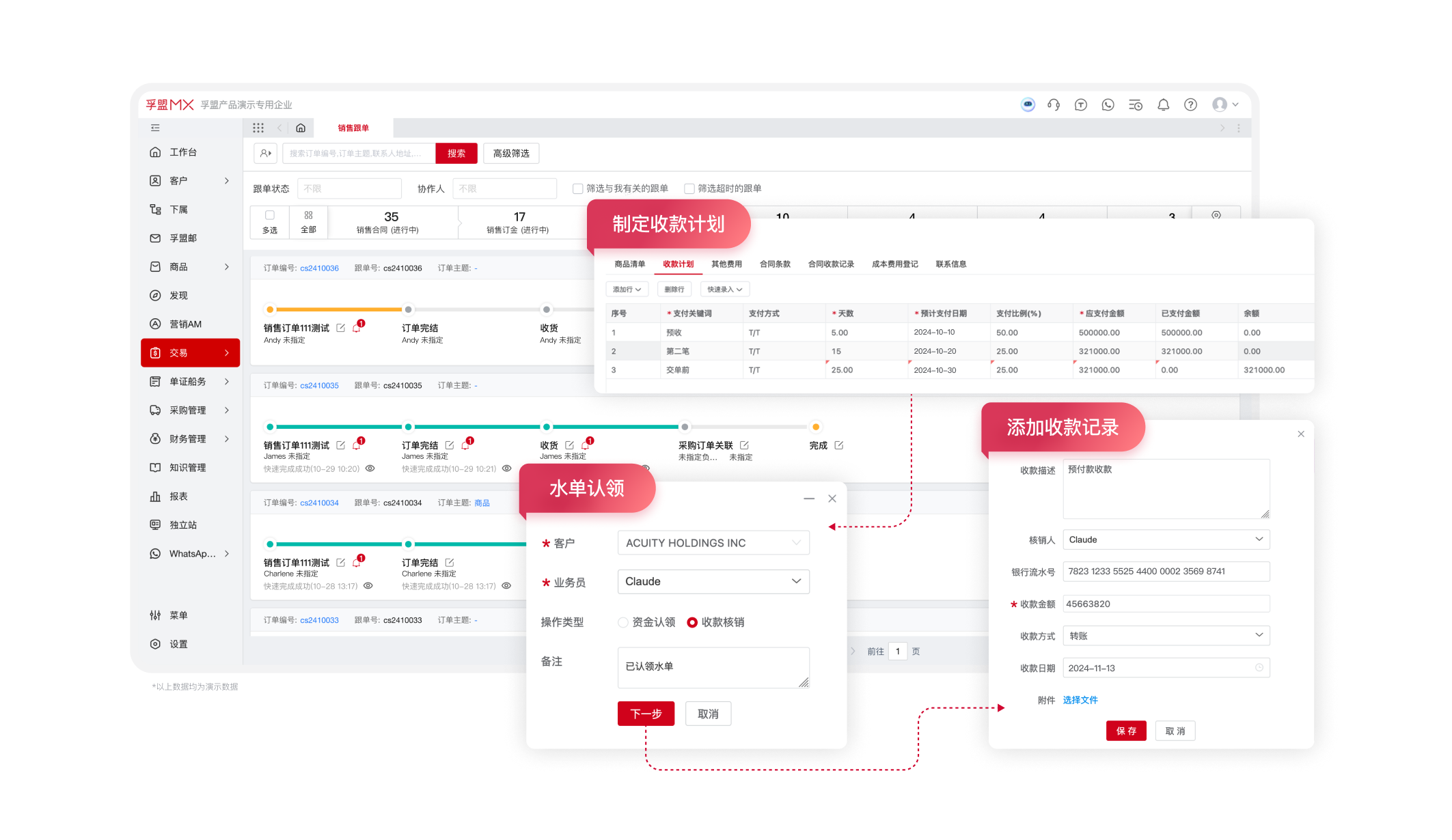 销售节点难把控,客户跟进难 • 外贸跟单进度不透明,销售行为难以监控